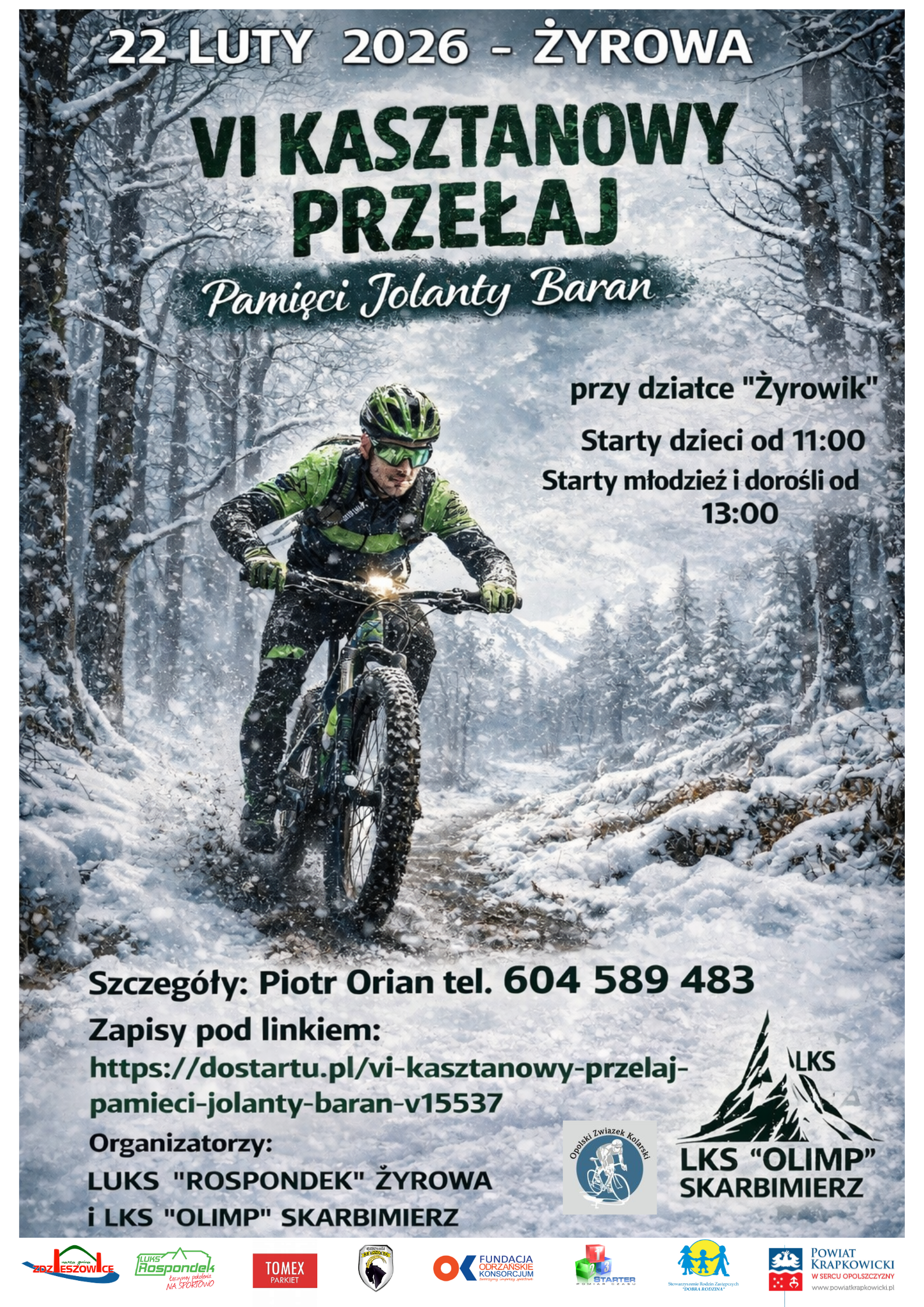 W dniu 22.02.2026r. w miejscowości Żyrowa odbędzie się wyścig VI KASZTANOWY PRZEŁAJ” – Pamięci Jolanty Baran